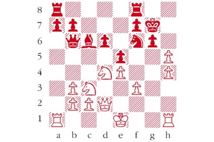 White to play. This position is from Tal–Benko, Candidates 1959. Black has just advanced with … e5, attacking the white knight. What has he overlooked? Answers to me at The Spectator by Tuesday 19 May or via email to victoria@spectator.co.uk or by fax on 020 7681 3773. The winner will be the first correct answer out