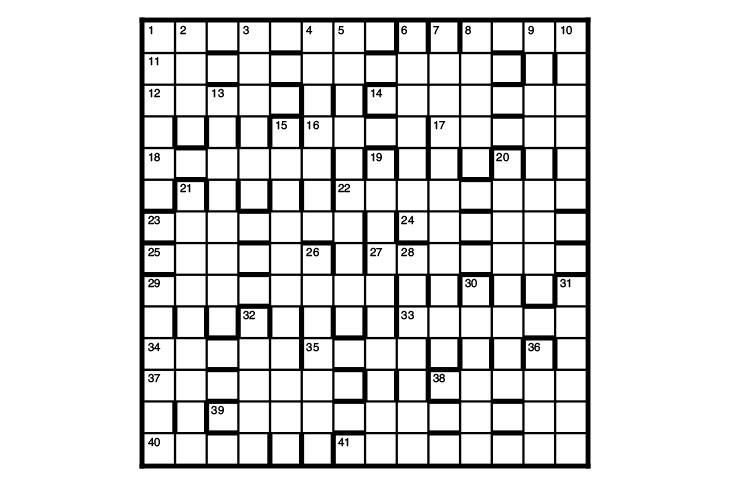 A first prize of £30 for the first correct solution opened on 11 February. There are two runners-up prizes of £20. (UK solvers can choose to receive the latest edition of the Chambers dictionary instead of cash — ring the word ‘dictionary’.) Entries to: Crossword 2392, The Spectator, 22 Old Queen Street, London SW1H 9HP. Please allow six weeks for prize delivery.