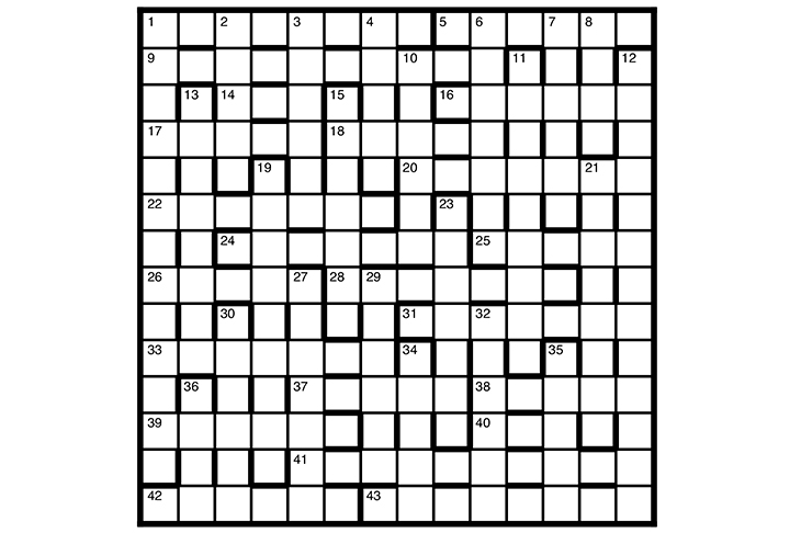 A first prize of £30 for the first correct solution opened on 7 September. There are two runners-up prizes of £20. Please scan or photograph entries and email them (including the crossword number in the subject field) to crosswords@spectator.co.uk – the dictionary prize is not available. We will revert to postal entries when things are normal again. Please allow six weeks for prize delivery.