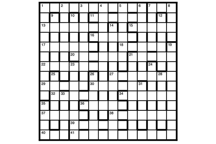 A first prize of £30 for the first correct solution opened on 24 May. There are two runners-up prizes of £20. Please scan or photograph entries and email them (including the crossword number in the subject field) to crosswords@spectator.co.uk – the dictionary prize is not available. We will accept postal entries again at some point.