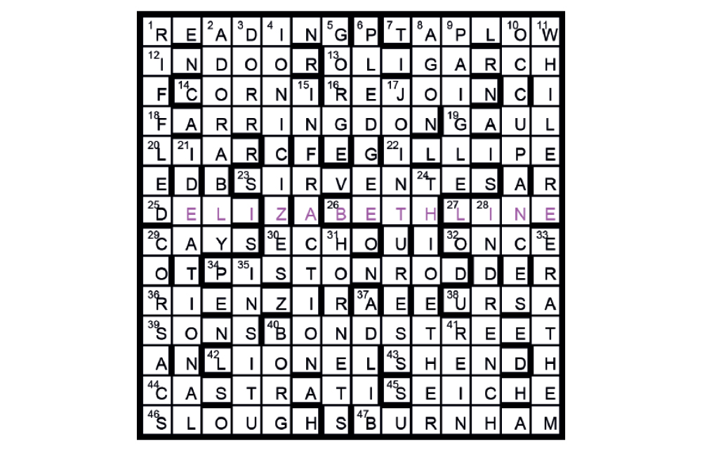 1A, 7A, 18A, 40A, 46A and 47A are all on the new Elizabeth Line, which appears in the grid when 25A, 26A and 27A are entered correctly.