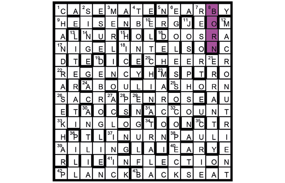 Unclued lights are some laureates of the Nobel Prize in Physics. There were two CURIEs (35). The clued name was Max BORN (8). The title is an anagram of NOBEL PRIZE.