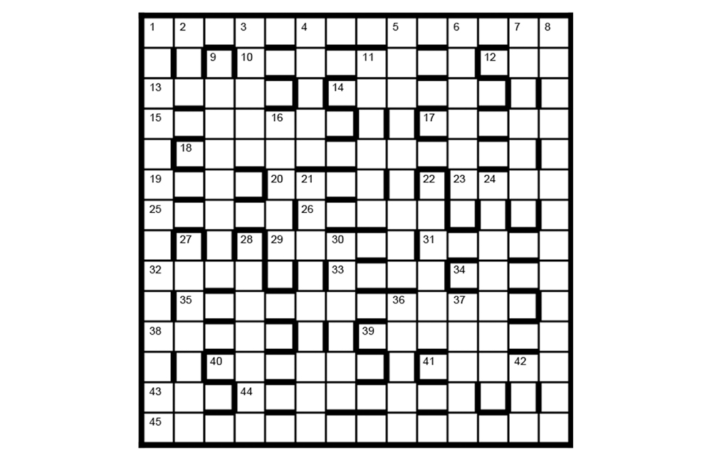 Apologies that last week’s 1 Down clue was missing. It should have read: