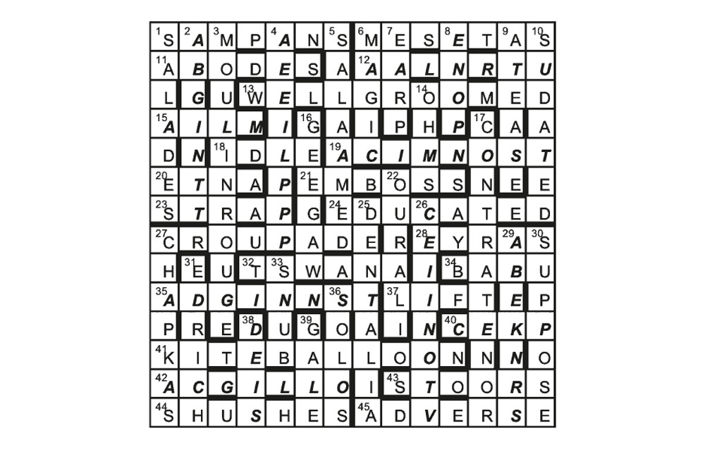 The twelve symmetrically placed unclued entries NATURAL, MAIL, MONASTIC, STANDING, PECK, LOGICAL, BATTING, APPLE-PIE, OPEN, EVICTION, BANKERS and SIDE can precede the word ORDER, and the title alluded to an ‘A to Z’. Thus unclued entries had to be entered in alphabetical order.