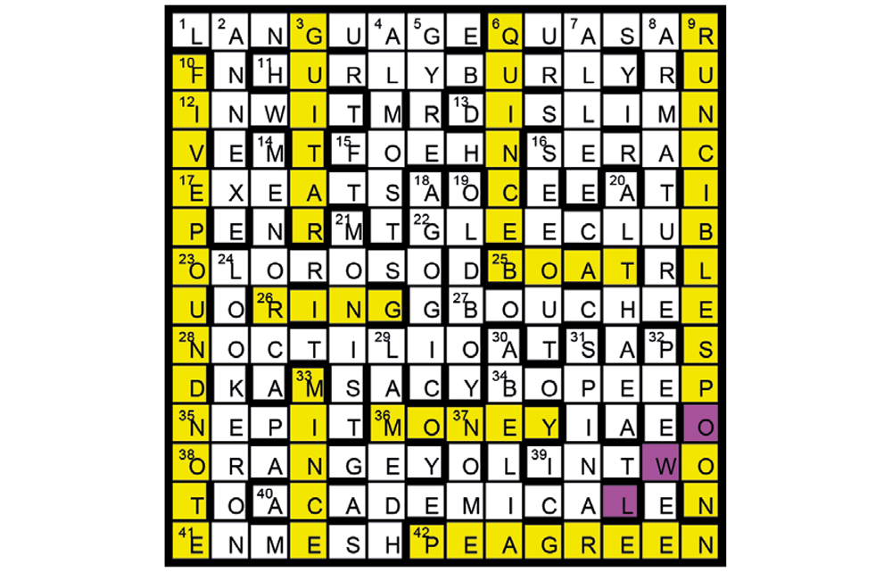 The journey was that of the Owl and the Pussy-cat, by Edward Lear. OWL appears diagonally backwards in the bottom right of the grid.