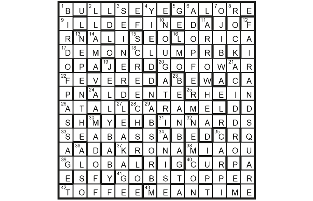 The unclued lights are all types of sweet. The title indicated SWEETIES, an anagram of ‘I SEE WETS’.