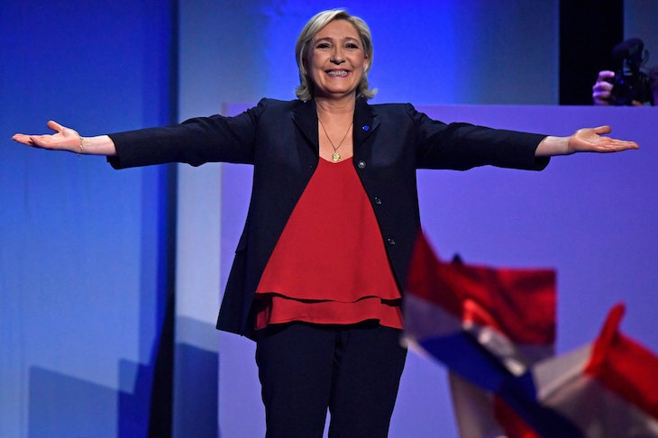 At last, Marine spoke: ‘This is the first step to take me to the Élysée,’ she said, to her cheering supporters. ‘From now on I have a huge responsibility of defending the French nation…the time has come to liberate France from the arrogant people who want to dictate to them. Because I am the candidate of the French people.’