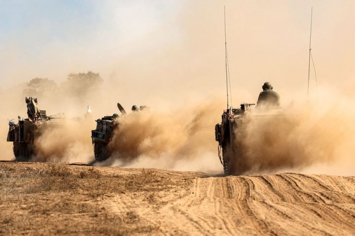 Israeli army tanks and vehicles deploy along the border with the Gaza Strip (Credit: Getty images)