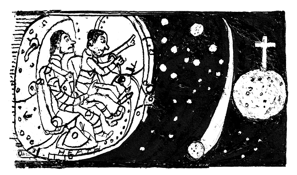 The Moon’s brightness illuminated Integrity’s interior. The crew turned out the cabin lights to get a better view. Most of the far side was in darkness, creating something like a hole in the sky, so they concentrated on the sunlit crescent as they sped towards the Moon’s shadow and the end of their outward journey.