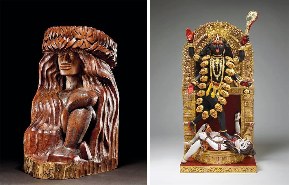 From here, we move rapidly on to the Japanese creation myth, then a 1980s representation of creation by Judith Chicago – upending the Judaeo-Christian gendered account – then an Inuit ‘mistress of the sea’ followed by a modern depiction of a Hawaiian volcano goddess. These juxtapositions of disparate cultures, ancient and modern, should be mutually illuminating but the effect throughout the show is more often discombobulating. The catalogue includes objects I missed, including a hilarious urn depiction of the rites of Demeter featuring a woman sowing seeds that sprout into phalluses.