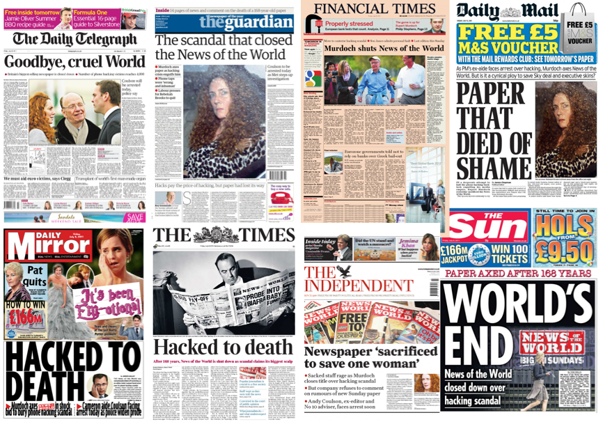 The blood of the News of the World is sprayed right across the front pages this morning. And yet there’s still more bleeding to be done, it seems. The Guardian has been reporting since last night that Andy Coulson is to be arrested today, over suspicions about his knowledge of phone hacking and police bribery at the paper he once edited. The Mail quotes “supporters of Mr Coulson” as saying that, “he could make damaging claims about Mrs Brooks, who edited the News of the World before him, which in turn could result in her being questioned.” Which rather captures the sense that this story could still intensify, even after Rupert Murdoch’s dramatic attempt to cauterise the wound.