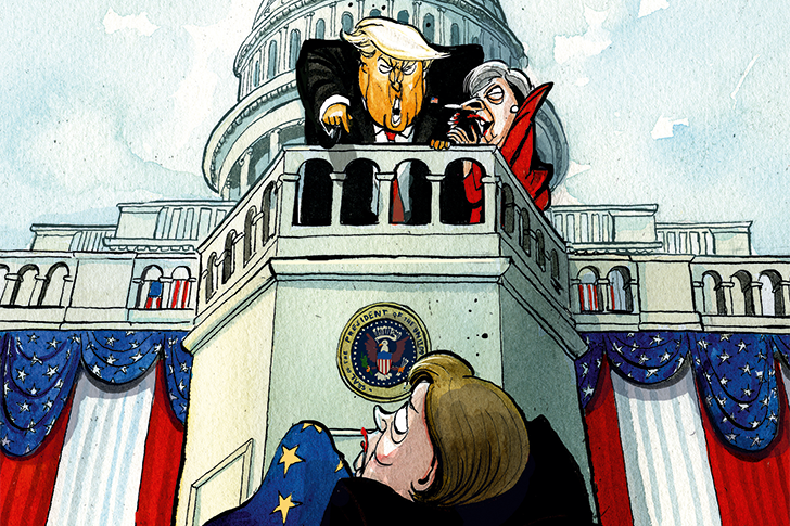 Trump may or may not know the name of the British Prime Minister but, as he told Michael Gove this week, he is determined to strike a free trade agreement with Britain ‘very quickly’. Trump deals in deals, and he wants to deal with us. As for Angela Merkel and the EU, they can either fall in with Trump’s new world order — or fall out with the world’s greatest superpower.