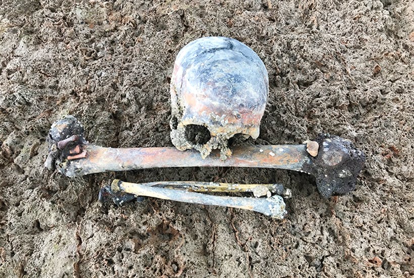 In the 15 years I’ve been chasing the tides, I’ve found countless coins and buttons, Roman hairpins, a complete Iron Age pot, medieval buckles, Tudor shoes, Georgian wine bottles and modern wedding rings, but the most sobering are the human finds. A handful of teeth, eaten away by rot, and a dirty creamy-yellow cup, a section of human skull with faint grooves and ridges on the inside where someone’s brain once pressed against it.