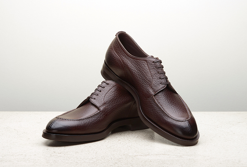 The Dover – with its distinctive hand-sewn, split-toe Derby design dating back to the 1920s – is typical of Edward Green’s meticulous attention to detail and quality. It is inspired by Norwegian fishermen, who pioneered a hand-sewing method using a malleable boar’s bristle needle that allows the two sides of the upper to be sewn edge-to-edge at the toe. The technique requires over two hours per pair – but what began as practical necessity has evolved into a polished expression of English shoemaking.
