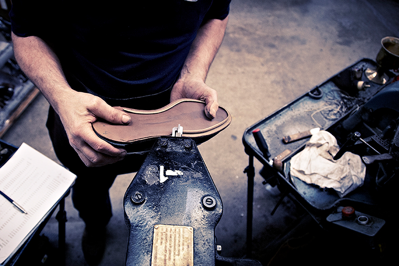 Visiting the factory, I was struck by the sense of quiet, confident pride that pervades the building. Production is split into two halves – on one side, clicking (the cutting of the leather patterns) and closing (where the leather pieces are sewn together) takes place; while the other is dedicated to lasting, where the final shape of the shoe is formed before finishing.