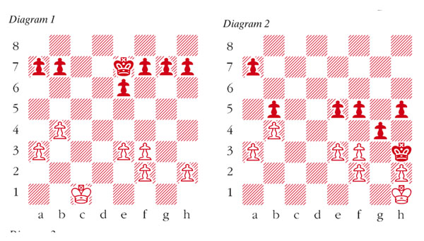 1 d4 d5 2 Nf3 c5 3 c4 dxc4 4 dxc5 Qxd1+ 5 Kxd1 Nc6 6 e3 Bg4 7 Bxc4 e6 8 a3 Bxc5 9 b4 Bd6 10 Bb2 Nf6 11 Nbd2 Ke7 12 Ke2 This position is, of course, completely equal. 12 … Be5 13 Bxe5 Nxe5 14 Rhc1 Rac8 15 Bb3 Rhd8 16 Nc4 Nxc4 17 Rxc4 Rxc4 18 Bxc4 Ne4 Black now has a tiny advantage as his knight is quite annoying for White, e.g. 19 Bd3 Nxf2. 19 Ke1 Bxf3 20 gxf3 Nd6 21 Be2 Rc8 22 Kd2 Nc4+ 23 Bxc4 Rxc4 24 Rc1 White should have played 24 f4 (preventing … Rh4) 24 … b5 25 Kd3 with good drawing chances. Cohn, however, assumed that the pawn ending was the simplest way of securing this result. 24 … Rxc1 25 Kxc1 (see diagram 1) 25 … Kf6 Rubinstein, an outstanding master of the endgame, begins an attack on the h2-pawn, which proves decisive. 26 Kd2 Kg5 27 Ke2 The counterattack on the queenside is too slow: after 27 Kd3 Kh4 28 Kc4 Kh3 Black has time to pick up the h2-pawn and queen his own h-pawn. Here it is important only that in reply to Kc7 he should play … b7-b5. 27 … Kh4 28 Kf1 Kh3 29 Kg1 The white king is tied to the defence of the h-pawn. He is powerless against the impending black pawn offensive on the kingside. 29 … e5 30 Kh1 30 a4 b6 31 b5 was more tenacious, when Black would have won by 31 … f5! 32 Kh1 g5 33 Kg1 h5 34 Kh1 h4 35 Kg1 e4 36 fxe4 fxe4 37 Kh1 Kg4 38 Kg2 h3+ 39 Kg1 Kf3 40 Kf1 g4. 30 … b5 Now Black also has an extra reserve tempo ( … a7-a6), which may prove useful. 31 Kg1 f5 32 Kh1 g5 33 Kg1 h5 34 Kh1 g4 (see diagram 2) 35 e4 If 35 fxg4, according to Averbakh, the simplest is 35 … fxg4! 36 Kg1 e4, then 37 … h4 and 38 … g3! 35 … fxe4 36 fxe4 Or 36 fxg4 hxg4 37 Kg1 e3 38 fxe3 e4 39 Kh1 g3. 36 … h4 37 Kg1 g3 38 hxg3 hxg3 White resigns 39 fxg3 Kxg3 and the black king runs along the third rank from h3 to the queenside.