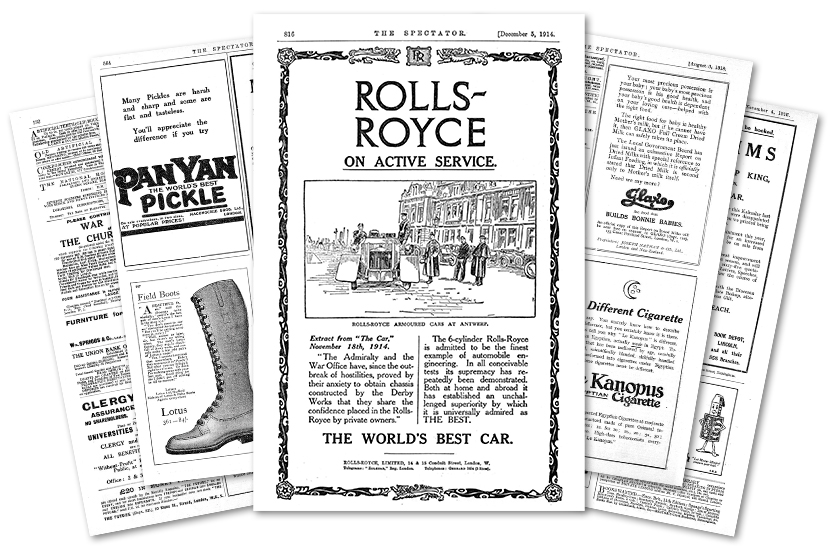 Hovis, Horlicks and Carr’s biscuits are there. Bovril, Boots, Colman’s, Fortnum’s, Cross & Blackwell (at the time a shop, not a manufacturer), Cadbury, Fry’s and a host of life-assurance companies which you would still recognise. But the most remarkable advertisement is an ad for The Spectator itself, from 1829, when it was one year old.