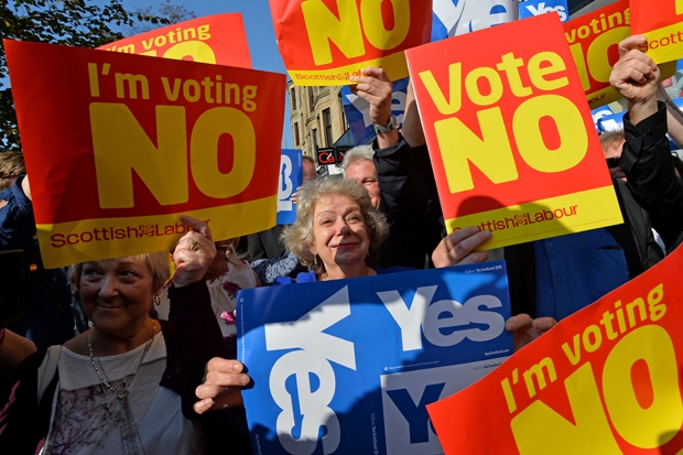 Those out canvassing don’t report encountering more blood-and-soil types than before. Instead, they say that what is driving people to ‘yes’ is a variant of the anti-politics mood that is roiling politics across the UK. The separatists have succeeded in mobilising the scorned and the scunnered in a way that insurgent parties are trying to do south of the border too. One cabinet minister warns that Westminster wouldn’t fare any better in a referendum in England than it is in Scotland.