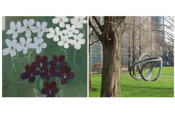 Eilís O’Connell (born 1953) is a very different kind of sculptor, who uses a wide range of materials and finds inspiration equally among the man-made and the organic. In the past she has fashioned shell-like forms out of woven stainless-steel cable or a nest from goose feathers; her latest work, on show at Canary Wharf, ranges from bronze to resin in a rich and satisfying vein of invention. Outside, in the small but popular Canary Wharf Park, where office workers congregate to smoke, lunch and chat, and young mothers bring their children to play in the spring sunshine, there are five substantial O’Connell pieces dotted around the grassy hummocks. ‘Anodos’ (2010) is like a stylised flame or tear drop, its deeply waisted vertical form in metallic bluey-green polyester resin has a sparkling, candescent quality, the colour shifting as you walk around it, your shadow distorting the surface reflections in a hall-of-mirrors way. It looks like a rather solid ignis fatuus, the will-o’-the-wisp or marsh gas exhalations that burn eerily of their own accord on boggy ground.