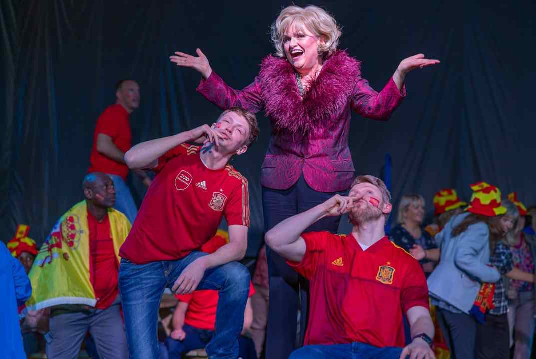 William Morgan was Candide: a wide-eyed man-child, first seen clutching his toy Millennium Falcon, and singing with undimmed freshness as his wounds grew bloodier. Cunegonde (Paula Sides) kicked seven bells out of a pile of designer shopping before Instagramming herself nailing the coloratura in ‘Glitter and Be Gay’: an upper register like sequins. Ronald Samm’s Dr Pangloss was a jive-talking huckster in a crimson zoot suit, suave without even trying. But the image of the night – and there were plenty to choose from – would have to be the great Susan Bullock channelling Joan Rivers as the Old Lady and dancing a one-woman tango on a picnic table as she drawled and snarled her way through ‘I am Easily Assimilated’. Lady, you said it.