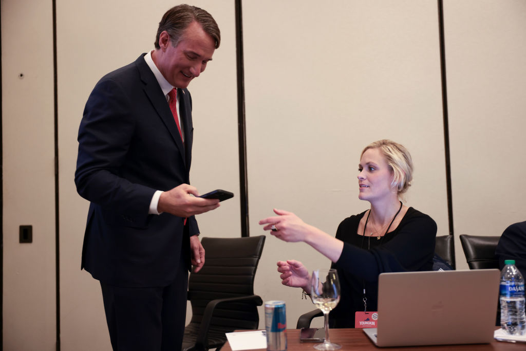 Glenn Youngkin and Kristin Davison (Photo by Anna Moneymaker/Getty Images)