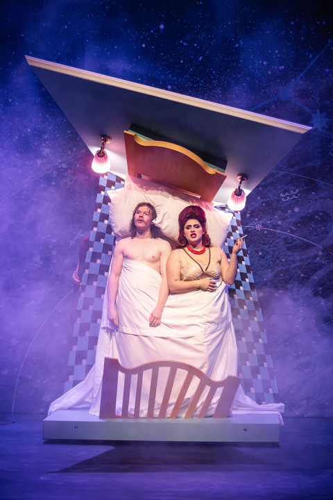 ​​Edward Wenborn and Jemima Gray, as the villainous (and faintly pervy) lovers Léandre and Clarisse, are clearly born to play these kind of roles.  IMAGE: © CRAIG FULLER
