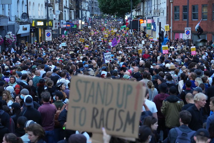 Indeed, Britain’s Jews are well within their rights to ask why there weren’t anti-racist gatherings in protest at their persecution following 7 October. Over the past ten months, synagogues in the UK have been daubed in graffiti. They’ve had their windows smashed. One in St John’s Wood in northwest London was targeted by a ‘pro-Palestine’ mob. Just two months ago, a teenage Nazi was jailed for eight years for plotting to blow up a synagogue. This week, yet another ‘surge’ in anti-Semitic hate crime has been reported. Where’s the demo?