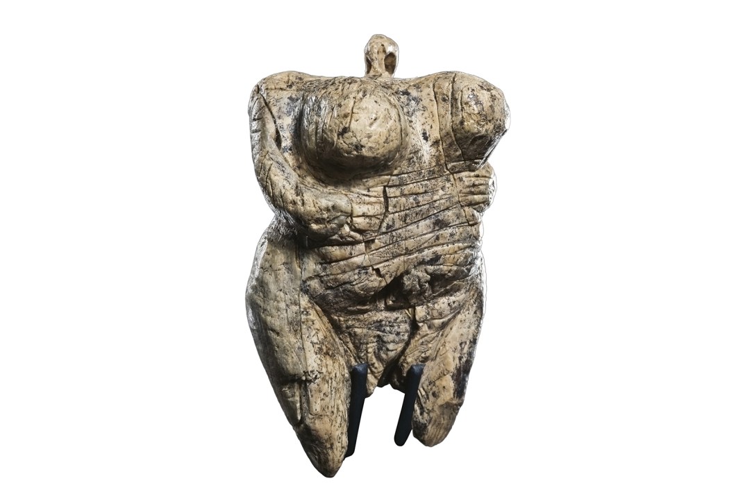 Counter to the ‘formalistic’ fascination of Lespugue, the Venus of Hohle Fels doesn’t have that kind of elegance as it is gnarly and cut through with many striations. The Venus of Lespugue, for me and for many sculptors, is the great example. It is extraordinary to reflect that at a time when maybe as few as 100,000 Homo sapiens lived in Europe, somebody made this remarkable piece. I think it was probably carved by a woman looking down at her own body, feeling it from within.