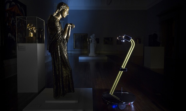 For five nights in August, four robots equipped with cameras roamed the galleries of Tate Britain and live-streamed their journeys to a microsite. A few of the robots’ online observers were also allowed to log in and manoeuvre them by remote control. The project was conceived by London-based design studio The Workers, winners of the first IK Prize (Tate’s award for digital innovation) in 2014.