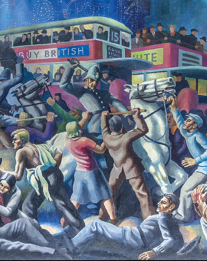 As the 1930s wore on, with the Spanish Civil War followed by rumblings of appeasement, an extraordinary web of connections formed between different groupings of artists, many newly politicised or catalysed by events, determined to set aside their aesthetic differences in a common cause. The aristocrat Jack Hastings had travelled to Russia and through Depression-era America before studying mural painting with Diego Rivera. Returning to London ‘a near communist’, he completed a vast mural in Marx House, Clerkenwell, to celebrate ‘The Worker of the Future Clearing Away the Chaos of Capitalism’.