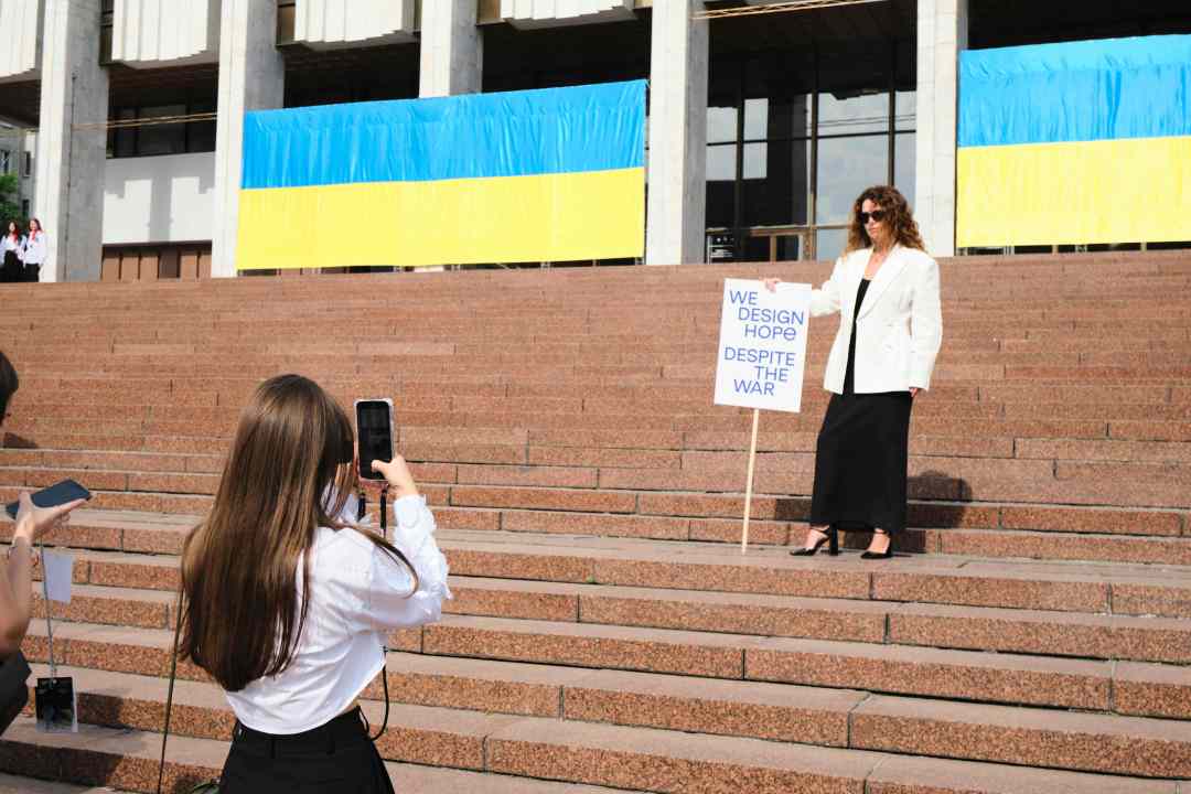 Constant reminders of the brutal impact of Russia’s invasion can be found throughout fashion week. Just before the entrance to the catwalk shows in Mystetskyi Arsenal, Ukraine’s flagship cultural institution, guests pass a Wall of Remembrance, honouring fallen fashion industry workers who joined the Ukrainian Armed Forces and paid the ultimate price defending their nation.