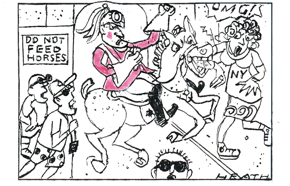 Will they never learn? The signs are very clear: ‘Beware! Horses may kick or bite.’ Yet last week a woman became the latest tourist to get a shock at Horse Guards, when the animal she was fussing suddenly turned its head and bit her arm. She was unhurt, but you can see why the animals occasionally lose their rag. They’re there to protect the monarch, after all. Sending a gentle message once in a while can’t do any harm.