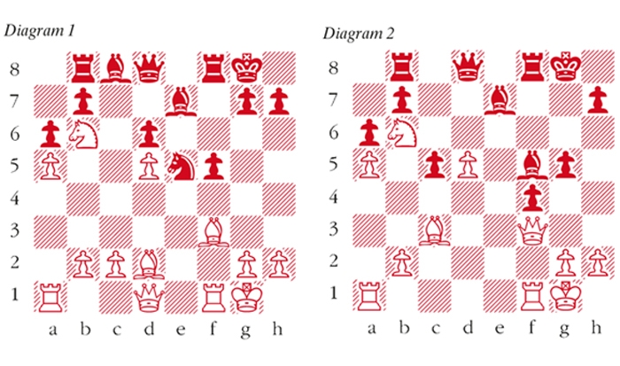 1 e4 c5 2 Nf3 Nc6 3 d4 cxd4 4 Nxd4 Nf6 5 Nc3 e5 This move is the hallmark of the Sveshnikov Variation of the Sicilian Defence. Black accepts a very obvious weakening of the pawn structure in return for free piece play. 6 Ndb5 d6 7 Nd5 The main lines of the Sveshnikov occur after 7 Bg5 which is a direct attempt to exploit Black’s self-inflicted wound on d5. 7 … Nxd5 8 exd5 Nb8 9 a4 Be7 10 Be2 0-0 11 0-0 Nd7 12 Bd2 f5 13 a5 a6 14 Na3 e4 15 Nc4 Ne5 16 Nb6 The knight is well-placed here as it controls key squares on the queenside. However, if play erupts on the other wing it will find itself misplaced. 16 … Rb8 17 f4 exf3 18 Bxf3 (see diagram 1) 18 … g5 Very aggressive and, in retrospect, a mistake. Carlsen weakens his own king in an attempt to attack White’s. More circumspect would be 18 … Nd7, challenging the black knight, followed by … Bf6. 19 c4 f4 20 Bc3 Bf5 21 c5 This is an excellent pawn sacrifice that enables White to exploit the weaknesses in Black’s position. 21 … Nxf3+ 22 Qxf3 dxc5 (see diagram 2) 23 Rad1 This is where Caruana misses his main chance. His choice turns out to be insufficiently dynamic and Carlsen is able to organise his defences in time. 23 Rae1 was strongly advocated by grandmaster Nigel Short during the game and analysis demonstrates that this move is far stronger. White has ideas of h4, Qh5 and Nc4 and Black will struggle to defend. 23 … Bd6 24 h3 Far too meek. With 24 Qh5 White could maintain considerable pressure against Black’s position. For example after 24 Qh5 Bg6 25 Qh3 Rf7 26 Nc4 Bf5 27 Qh6 Bf8 28 Qh5 Bg7 29 d6, White has a clear advantage but Black is certainly in the game. 24 … Qe8 Carlsen regroups effectively and defends without too much trouble. 25 Nc4 Qg6 26 Nxd6 Qxd6 27 h4 Earlier on this would have been strong but now that the position has become simplified, this thrust loses its potency. 27 … gxh4 28 Qxf4 Qxf4 29 Rxf4 h5 30 Re1 Bg4 31 Rf6 Rxf6 32 Bxf6 Kf7 33 Bxh4 Re8 34 Rf1+ Kg8 35 Rf6 Re2 36 Rg6+ Kf8 37 d6 Rd2 38 Rg5 Draw agreed