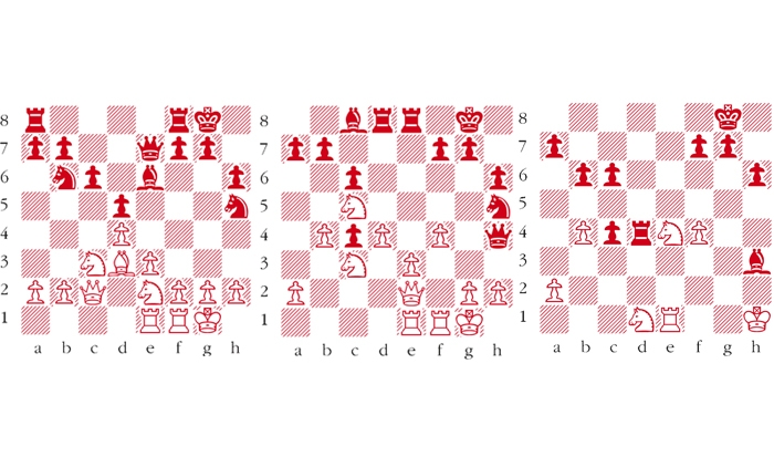 Here 21 Qxc4 is possible when 21 … Nxf4 22 Rxf4 Qxe1+ or 22 exf4 Rxe1 both win for Black. However after the cold-blooded 22 Kh1 the position is level. White’s ill-advised pawn advance in front of his king is playing with fire. 21 … Nxg3 22 hxg3 Qxg3+ 23 Kh1 If 23 Qg2 Rxe3 also nets three pawns for the piece. 23 … Qh3+ 24 Qh2 If 24 Kg1 Rd6 wins. 24 … Rxe3 25 Nd1 Rxe1 26 Qxh3 Bxh3 27 Rxe1 b6 28 Ne4 Rxd4