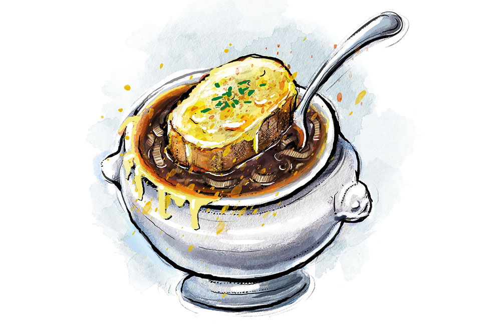 But French onion soup is an outlier: shortcuts simply don’t work here. Less cooking time will result in an insipid flavour. Adding bicarbonate of soda will break down the onions faster, but also means you get onion sludge (about as delicious as it sounds) – and an insipid flavour. Sugar will help the onions caramelise faster, but they don’t need it, and ultimately it will overwhelm the natural sweetness they give up during cooking.