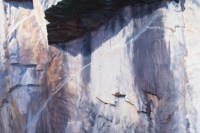 Whatever next? Assisted by an international award from our own Arts Council, the Leonardo Network and Nasa, Lijn spent three months in 2005 as resident artist at the Space Sciences Laboratory in Berkeley, California. There she met Dr Andrew Westphal, director of the Stardust Project for the collection of interstellar dust, and Dr Steven Jones, the inventor of Aerogel, the new material devised for trapping it. Aerogel is made of silicon dioxide, 1 per cent glass, 99 per cent air, and is essentially an extremely delicate glass net, soft but not yielding to the touch, white, semi-transparent, something like the shards of sea-scoured white glass you might find on a beach, but nothing like as robust. In fact, it is so fragile that every time Lijn, back in London, received a consignment of the stuff from Dr Jones, the discs or cylinders or cones into which he had moulded it were shattered. Making a virtue of accident, encouraged by Dr Westphal’s remark that ‘the dust is incredibly ancient, a million times older than a Greek temple. We are really like fossil hunters…’, Lijn decided to treat her broken pieces of Aerogel as ruins.