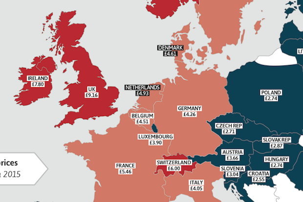 Why? Take a look at the the map at the top of this post, showing premium cigarette prices in March 2015. It’s a detail from a map produced by the TMA (click here to see it in full), so it should perhaps carry a health warning, but even if you dispute the exact figures there is clearly a major disparity between the UK and every country in Europe except Norway.