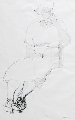 There are famous examples from each phase of his evolution. The early tinted drawing ‘Self-Portrait’ 1911, hinting at the dynamic vorticism to come; the oil of his wife, ‘Red Portrait’ 1937, from the Courtauld; some brilliant drawings, portraits (the best done in England since Holbein?) and nudes; the watercolour ‘Bathing Scene’ 1938, recalling his description of a Max Ernst, ‘two disintegrated figures in frenzied conjugation’; mechanical figures, bird figures, musical-instrument figures, which seem to have inspired the designers of recent sci-fi films; bitingly funny caricatures and satires; a charged desert landscape. Only two works belong to Rugby.