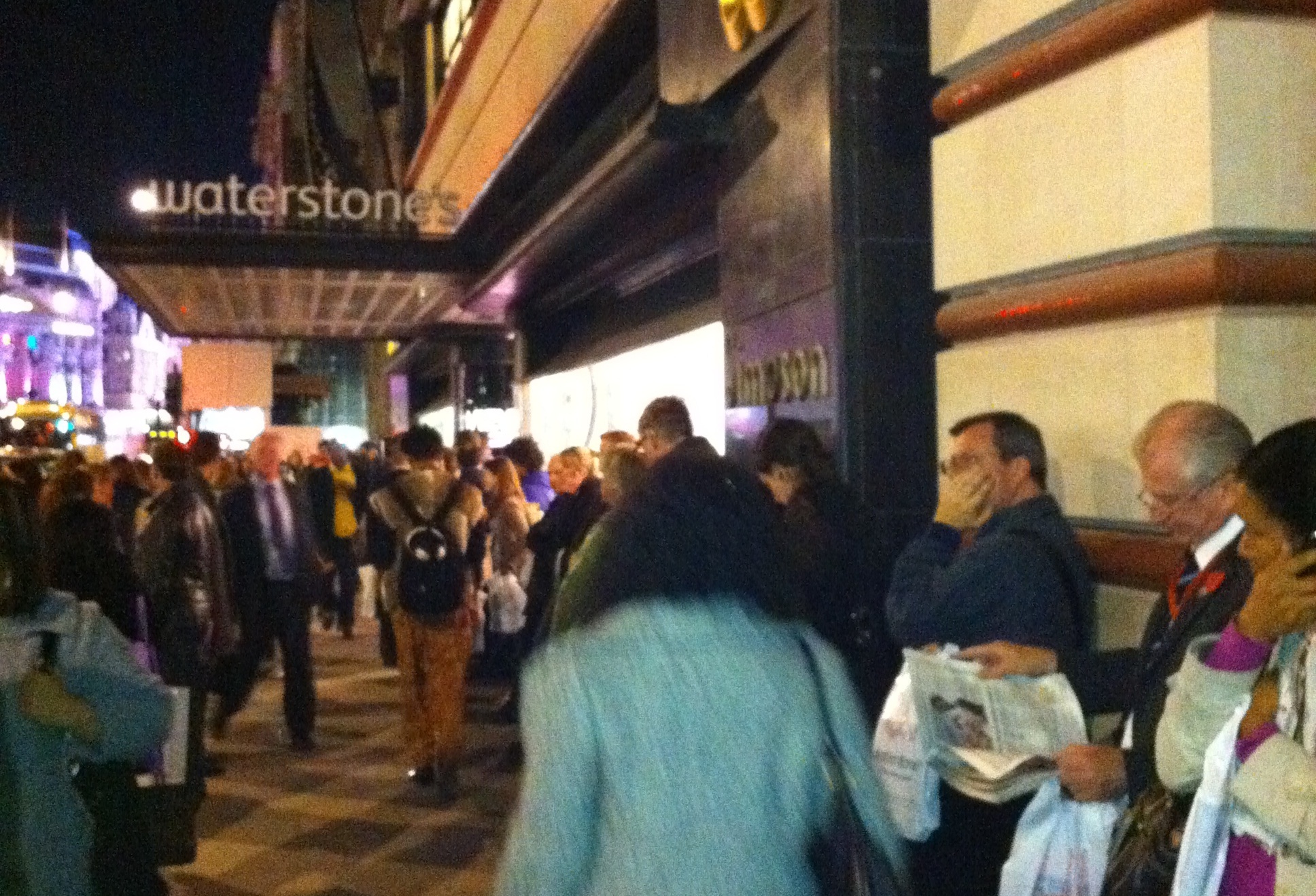 An astonishing number of people turned out for the exclusive book signing this evening at Waterstone’s Piccadilly, which had been turned into 221B Baker Street. Leather armchairs stood idle, punch cartoons hung on walls and a violinist scratched away at Bach. Only Mrs Hudson was missing.