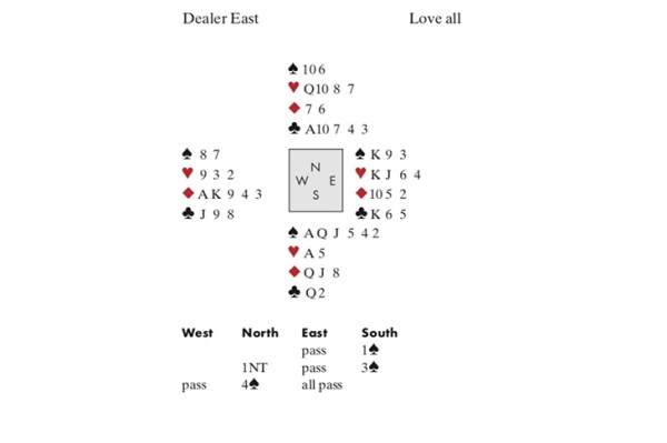 That bridge brain of his, which never stops working, was on display all week in Tangier. Take this 4♠ contract, which I’d have made against anyone else; not with Andrew on my right: