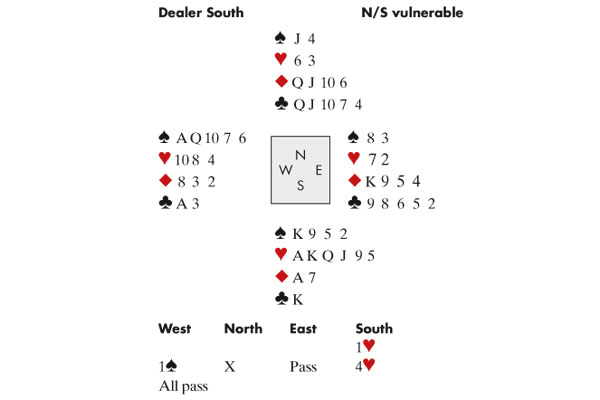 2♣ showed a weak hand with both majors. The defence led two rounds of spades, Andrew ruffing the second. East was likely to hold ♣Kxx. Trumps could be picked up by finessing twice from dummy — but Andrew needed to use one trump to ruff his third heart. At Trick 3 he ran the ♦10 to East’s ♦J, and East shifted to a heart. Andrew rose with the ♥A, played a diamond to the ace, then led the ♣J. East played low (he had to — if he covered, Andrew could ruff a heart). Now Andrew switched tack: he ruffed a diamond to set up the suit, crossed to the ♥K and led the ♦Q. If East ruffed, he could over-ruff, ruff a heart and claim. If East discarded, he could discard a heart, then lead the second trump and finesse against East’s ♣K. Eleven tricks in the bag.