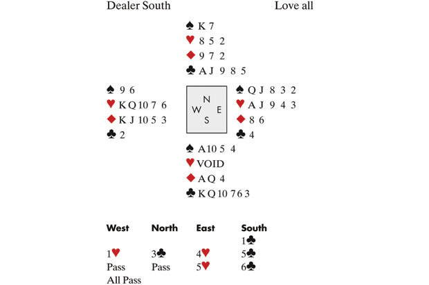 Running the nine of Diamonds works on this layout, but if East can cover it with either the 10 or Jack, it spoils the endplay. If instead Declarer attempts to run the seven, 10 or Jack from East is not good enough — only if he can insert the eight can he do any damage. The right play percentage-wise is therefore to run the seven, which Nick worked out was better. Unfortunately East hopped in with his eight and we lost a huge swing. Pips — don’t you hate them!