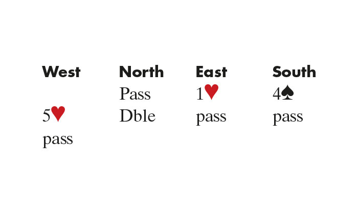 So what do you lead? My answer was a top spade, which I felt must be wrong (too obvious). But it was a trick question — very unfair! The ‘right’ answer was that you shouldn’t be on lead at all. Zia, your partner, had made a striped-tailed-ape double. This is about my favourite term in bridge: it’s when you double at the 5-level knowing the opponents can make slam — the doubled overtrick will cost you less than a slam, but if they redouble you intend to run like a striped-tailed-ape to your partner’s suit.