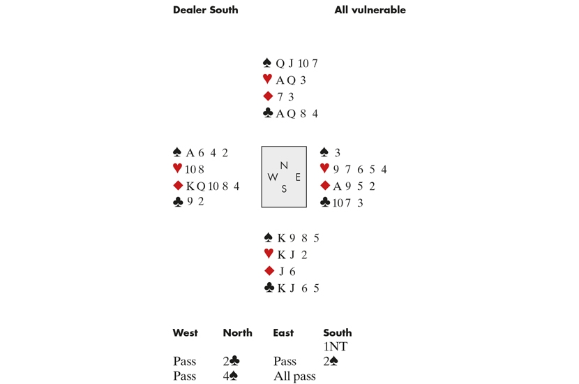 My K,Q of Diamonds held the first two tricks, East signalling an even number. I began counting and knew that my partner could have no more points outside the A◆. Then suddenly I saw it; I have the contract off in my own hand by playing a third Diamond! Wherever he ruffs it, I’ll duck two rounds of trumps. If he plays a third round, I’m ahead with the force and it goes two down. If he starts to cash side suits, I get a ruff. They’re not laughing now.