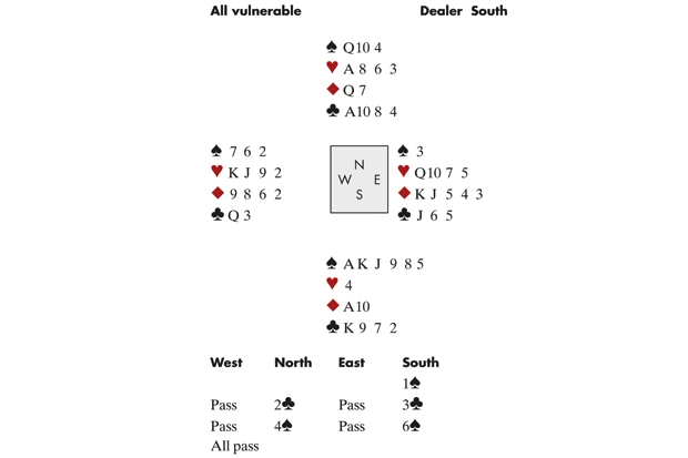 East took stock. He knew both the red suits were eliminated, but did declarer have 6–4 or 7–3 in the black suits? If it was 6–4, he should give a ruff and sluff, but if it was 7–3 he had to play Clubs and hope that partner had Q9x of Clubs. The latter seemed slightly more likely, judging from the auction, and East eventually played a Club, picking up the suit for a deserving declarer.