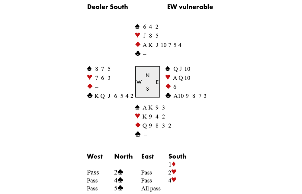 Playing what they call an ‘artificial 2♣️ game-force relay system’, Stefano (South) opened a natural 1♦️. Sebastian’s 2♣️ showed any game-forcing hand. 2♥️ was natural, showing an unbalanced hand. 4♣️ was a splinter agreeing diamonds. 4♥️ was a cue-bid, and 5♣️ showed a void. Or did it…? Stefano found it hard to believe that Sebastian had a club void when he did too. It was more plausible, surely, that he had forgotten their system, and that his bids had been natural. And so, instead of bidding 5♦️, he passed! West, Artur Malinowski, wished Sebastian a cheeky good luck as he too passed. The contract went eight down. It wasn’t actually such a bad score, as in the other room Tom Townsend and Thor-Erik Hoftaniska played in 6♦️ redoubled, down one!