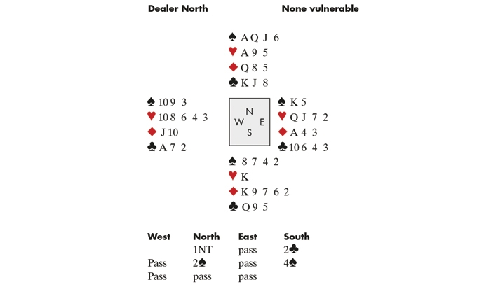 East, Kang Meng, led the ♥Q. Declarer, Lu Yiping, won and took a spade finesse. Kang won and switched to a club. Lu won the second club, drew trumps, and now had to decide how to play diamonds. Since East had shown up with just two trumps, he naturally played West for short diamonds. He crossed to dummy and played a diamond to West’s ♦J and his ♦Q. Kang ducked smoothly. Had he taken the trick, Lu would surely have got diamonds right: West’s ♦J couldn’t be a singleton as he would have tried for a diamond ruff when in with the ♣A at trick 3. So, to make the contract, he would have to place West with an original holding of ♦J10. Lu now played the ♦5, Kang ducked again, and — playing West for ♦AJ — Lu inserted dummy’s ♦9. West won and East ♦A was the setting trick. $150,000: not a bad price for two ducks.