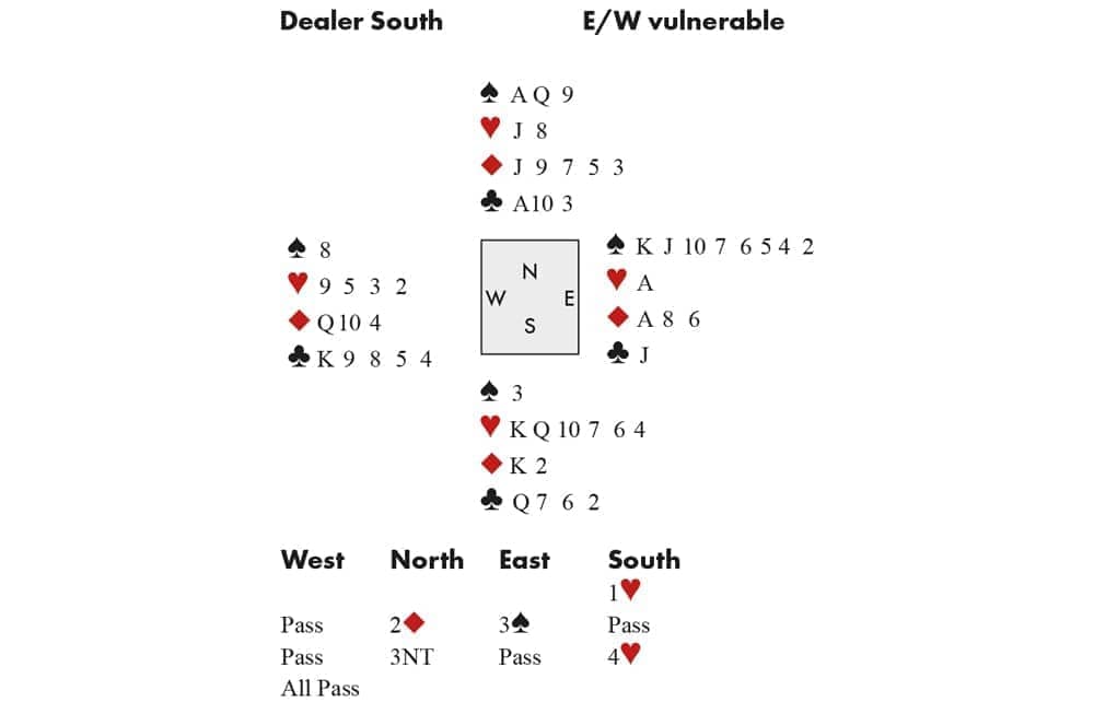 Even looking at all the hands it’s not easy to see that the contract can make, but Sam worked it out at the table; the only chance is that Diamonds are 3-3 and East has the singleton Jack of Clubs.