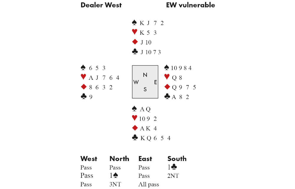 West led the ♥6. Sebastian played low, and East’s ♥Q won. Most declarers would routinely play the ♥2 from hand. But if West guesses that East started with two hearts, he’ll win the heart return with the ♥A. If he thinks East started with three, he’ll duck it to keep communication open. Sebastian’s solution? To play the ♥9! When East continued with the ♥8, he played with the ♥10. West, now convinced East had started with ♥Q82, ducked. Two overtricks scored nearly 100 per cent.