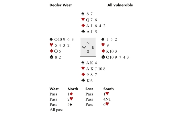 Andrew Robson who, I read somewhere, is 70 per cent class, 20 per cent tall and 10 per cent a bit of a slowcoach, was sitting West. The contract is quite good, mainly because of South’s 9, 8 of Diamonds, which gives declarer an extra opportunity in that suit. The slam was bid at four of the eight tables in Division One.